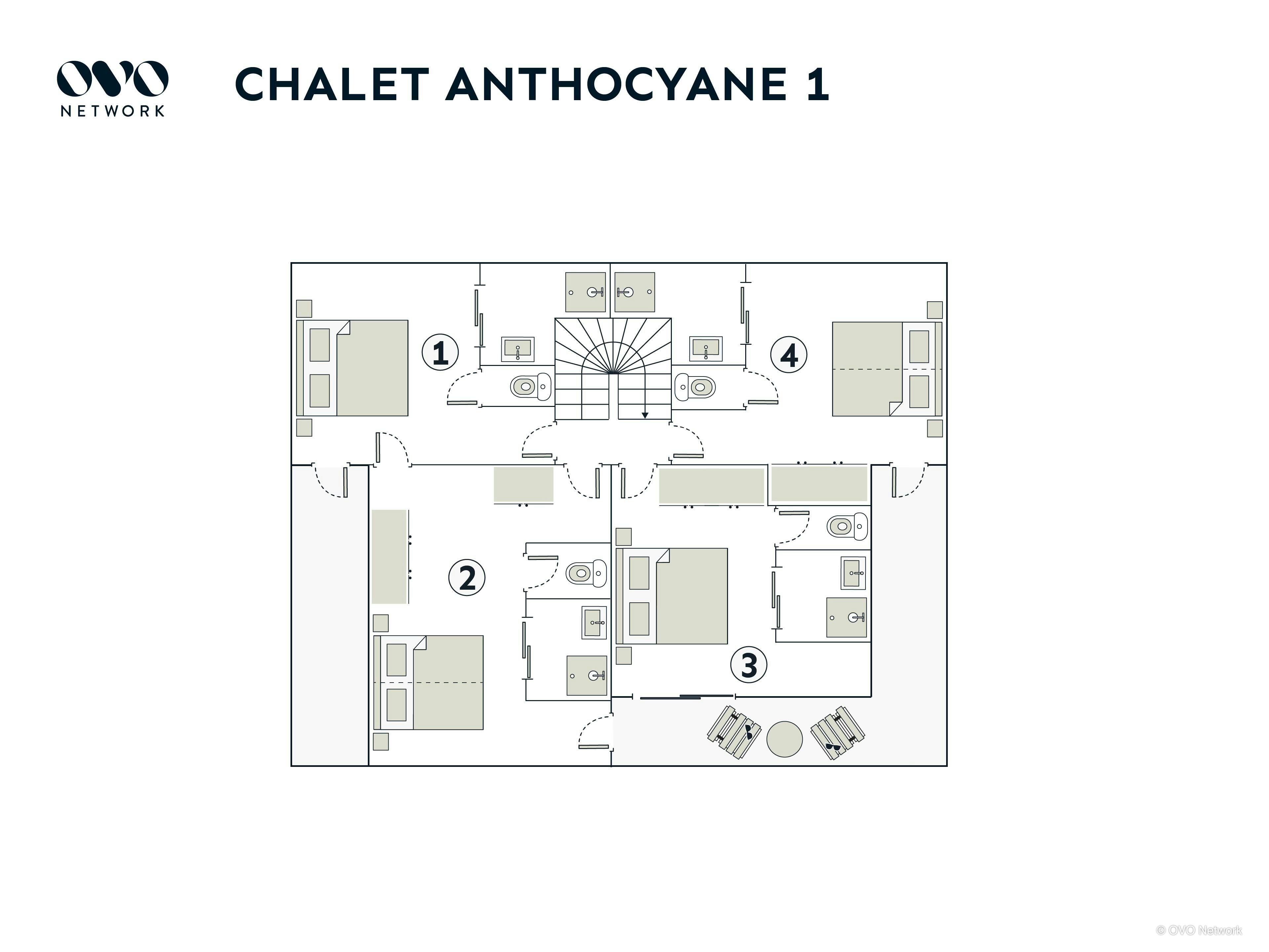 Chalet Anthocyane is a stunning three-storey property for up to 14 guests. It has five bedrooms, four of which have en-suite shower rooms.